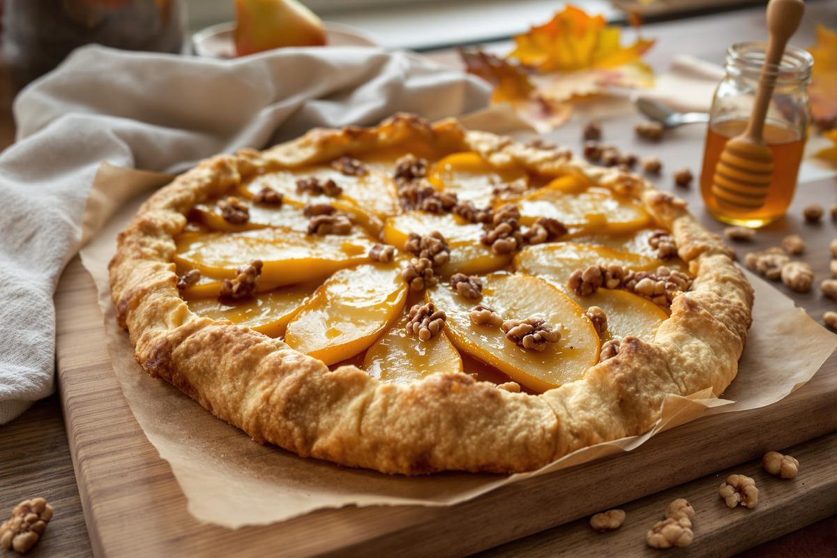 Des poires fondantes, des noix croquantes, un soupçon de miel, et une pâte à la poudre d’amande… C’est la surprise sucrée qu’il vous faut. Ultra simple, mais spectaculaire une fois servie. Impossible d’en manger qu’une !